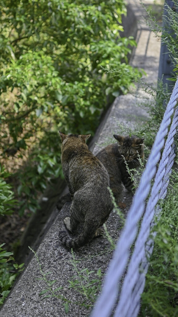 目的地、直島新美術館へと向かうため山道を進んでいくと2匹の猫ちゃんを見つけた。
